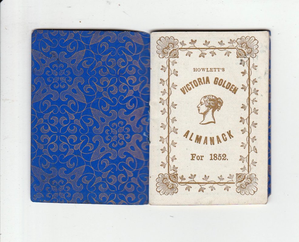 HOWLETT'S VICTORIA GOLDEN ALMANACK FOR 1852 Being Leap-Year.