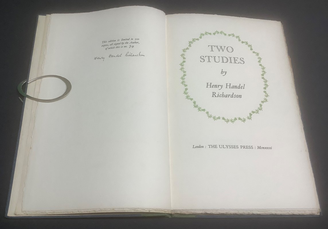 LIMITED EDITION No. 34 of 500. SIGNED BY AUTHOR. 8vo. hardback in quarter green cloth, gilt, with blue paper-covered boards. Numbered and Signed by the Author to Limitation Page. No other markings or inscriptions. Very light foxing to prelims, else a VERY GOOD COPY.