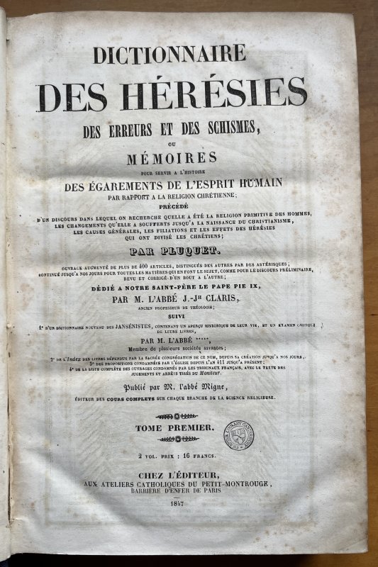 Published by M l'abbe Migne in Paris 1847