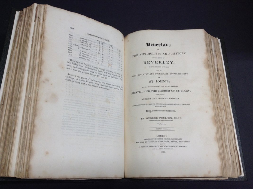 BEVERLAC; OR THE ANTIQUITIES AND HISTORY OF THE TOWN OF BEVERLEY IN THE COUNTY OF YORK And of the Provostry and Collegiate Establishment of St. John; with a minute description of the present Minster and the Church of St. Mary, and other ancient and modern