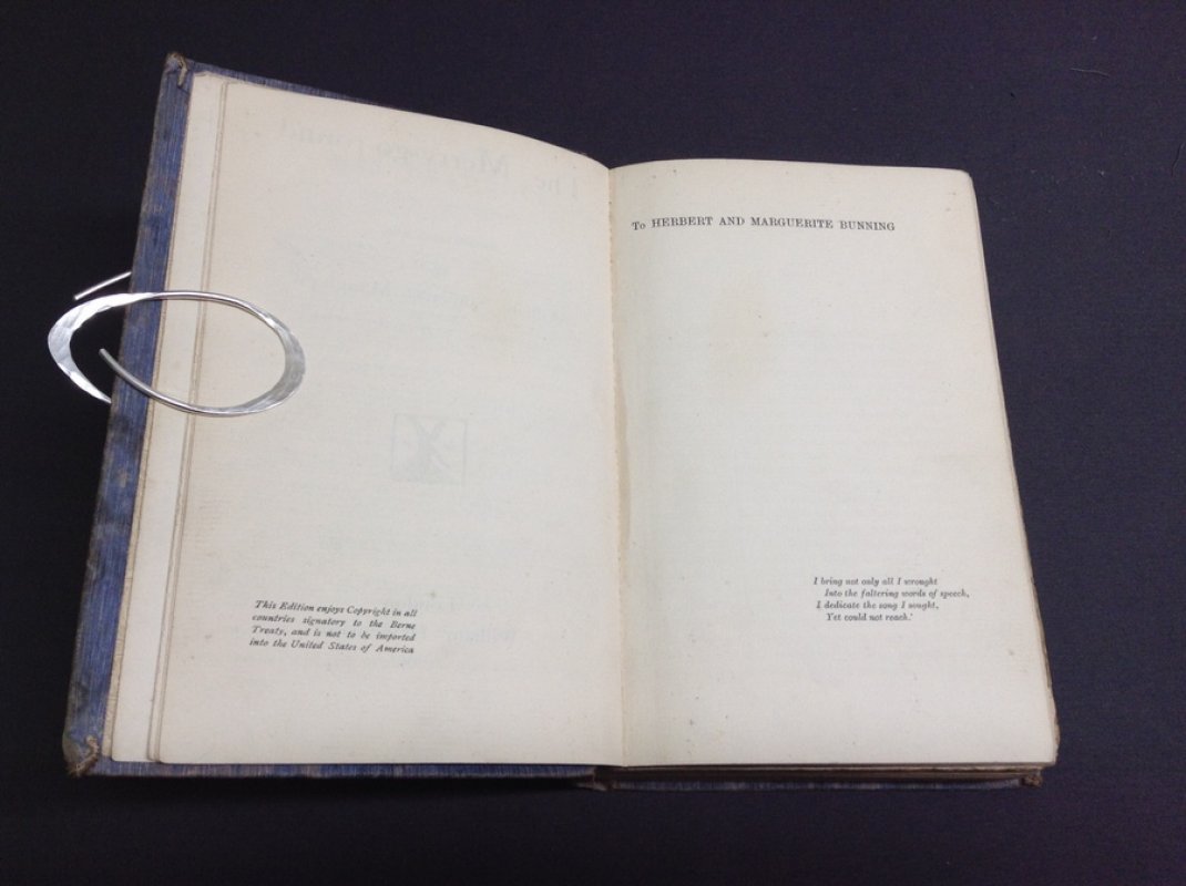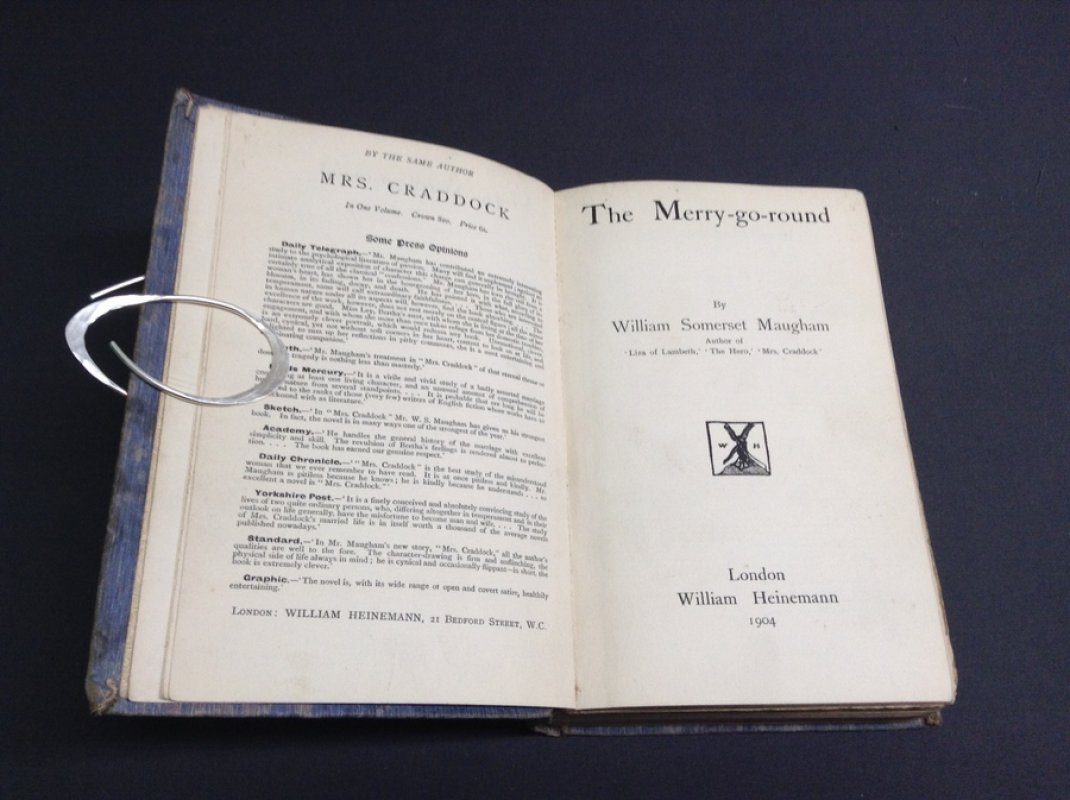 FIRST EDITION. 8vo., mid-blue cloth with ornate gilt titles to spine (rebound for Boot's Book-lovers Library, possibly around 1910, with slight trimming to edges but not affecting text). Sage green Art Nouveau patterned endpapers, reinforced at inner hinges. Includes detached ivory bakelite bookmark, with Boot's Book-lovers Library printed on one side and Membership details, dated 1916, hand-written on reverse. Library label to rear pastedown and lighter area to upper board where Boot's Library sticker was. Light marks to endpapers from removal of tape. Occasional light soiling. Covers somewhat worn and faded. A poor, sound but unusual copy.