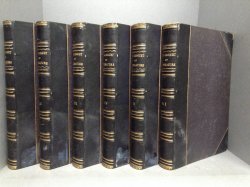 Six Volumes 8vo. hardbacks bound in half black roan with raised bands, gilt to spines and black textured cloth boards. All edges marbled. Each volume illustrated with steel engraved plates. A clean set with no previous owners' markings or inscriptions. Small areas of damp staining to lower edge near spine affecting covers and some internal pages. Light wear and rubbing to boards and corners. Overall a Good, Handsome Set.