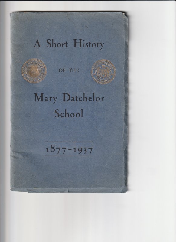 A SHORT HISTORY OF THE MARY DATCHELOR SCHOOL 1877 - 1937.