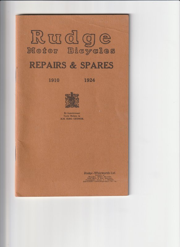 RUDGE MOTOR BICYCLES: REPAIRS & SPARES 1910 - 1924