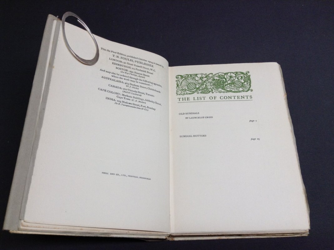 A BOOK OF OLD SUNDIALS & THEIR MOTTOES (Cover design by Jessie M. King) With Eight Illustrations in Colour by Alfred Rawlings and Thirty-six Drawings of some Famous Sundials by Warrington Hogg.