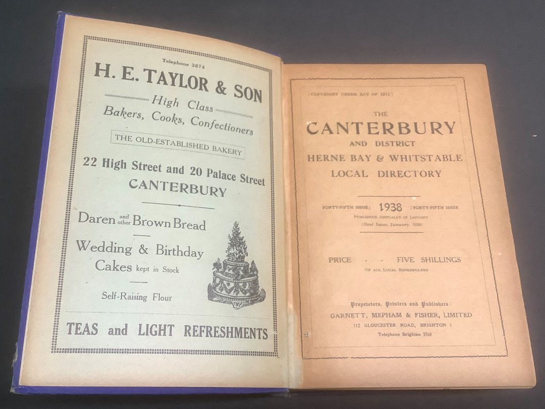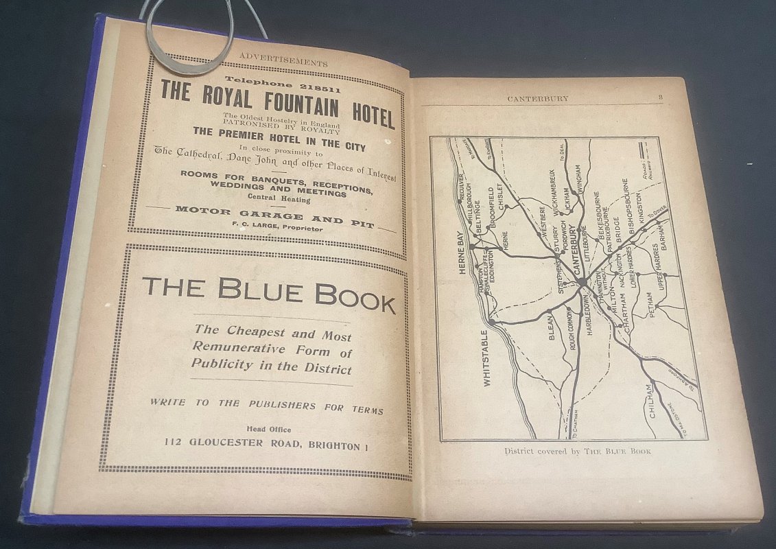 THE CANTERBURY AND DISTRICT, HERNE BAY and WHITSTABLE BLUE BOOK AND LOCAL DIRECTORY 1938 Forty-Fifth Issue.