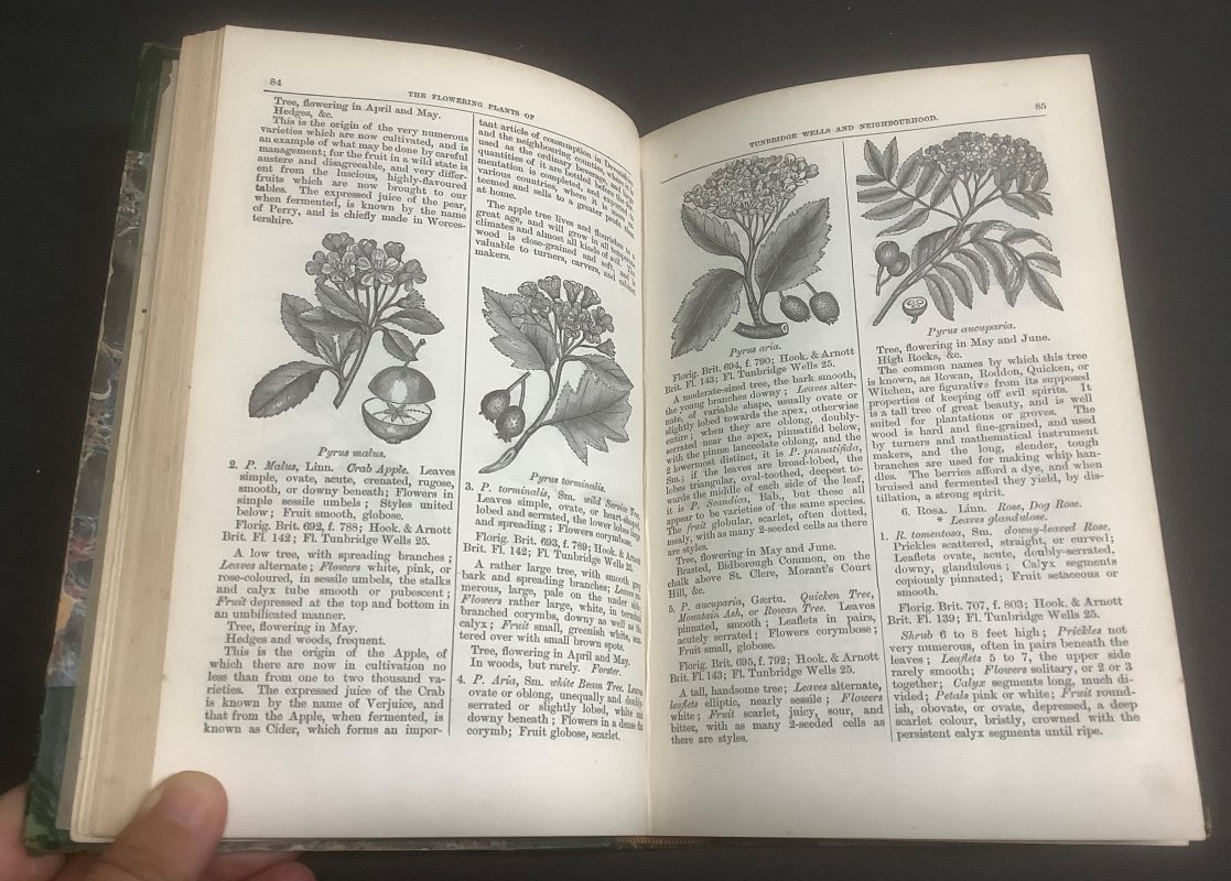 FIRST EDITION 8vo. hardback in half dark green contemporary calf with raised bands, red title label, gilt to spine and marbled boards. vi, 371pp., Indexed, main text in 2 columns per page, profusely illustrated with b/w woodcuts throughout and hand-coloured frontispiece. Bookplate of William Brackett (Author of A Guide to Tunbridge Wells, 1863) to front pastedown. Light foxing to prelims. Light wear and rubbing to spine and corners and scuffing to boards (please see photos). Overall a GOOD+ COPY.