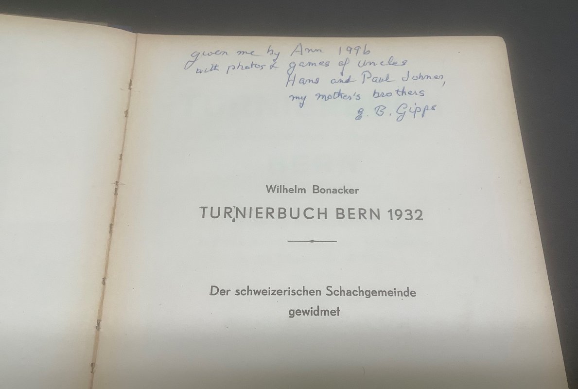 TURNIERBUCH DES INTERNATIONALEN SCHACHTURNIERS BERN 16. bis 30. Juli 1932 (Association Copy)