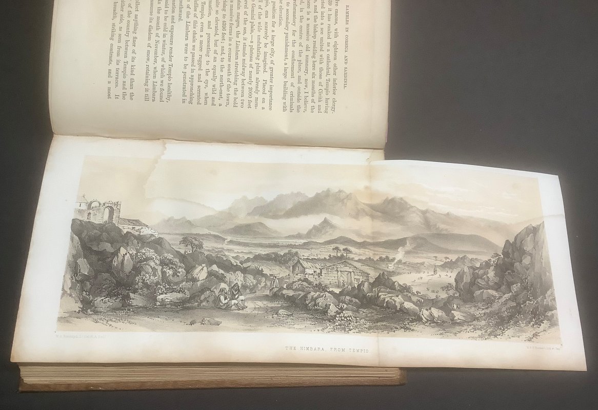 FIRST EDITION 4to. (approx. 26 x 17.5cm) hardback in original Publisher's textured red/brown cloth with decorative gilt to spine. xvii, [4], 450pp. plus 2pp. Advertisements at end. Illustrated with 2 chromolithographed plates, a colour Map, 6 tinted lithographs and 39 b/w woodcut vignettes within the text. Old engraved armorial bookplate (John William Warre Tyndale) to front pastedown and neat ink name (Helen Margaret Tyndale) and date (1858) to top of title page. Some water-staining, mainly to plates (please see photos). Cloth binding rather soiled and worn, particularly to spine where there is some loss to top (please see photos). Overall a Good, Sound Copy.