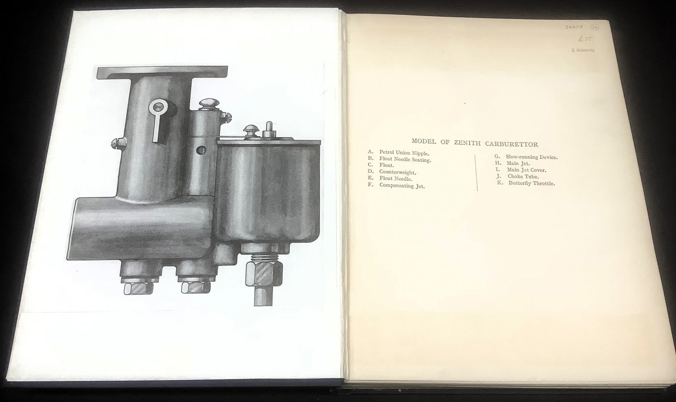 3 Volumes. 4to. blue cloth hardbacks, gilt. 247pp, 238pp. and 323pp. All three volumes profusely illustrated in b/w with 3 layer colour frontispieces to Volumes I and II. Also a loose folded chart of Engine Faults. A clean set with no previous owners' markings or inscriptions. Slight browning to endpapers. Light wear to tops and bases of spines. A VERY GOOD SET.