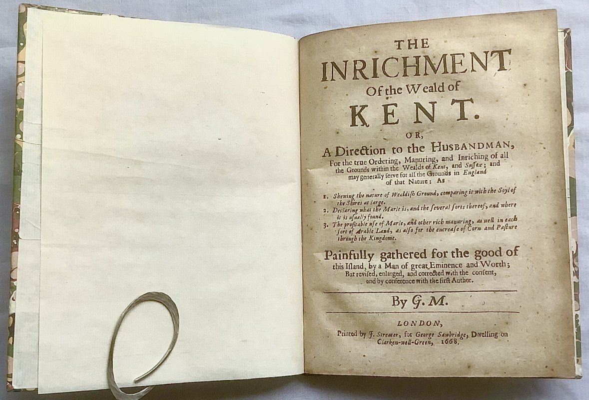 THE INRICHMENT OF THE WEALD OF KENT: Or, A Direction to the Husbandman, for the True Ordering, Manuring and Inriching of All the Grounds Within the Wealds of Kent and Sussex; and may generally serve for all the Grounds in England of that Nature. Painfully gathered for the good of this Island, by a Man of great Eminence and Worth; but revised, enlarged and corrected with the consent, and by conference with the first Author.