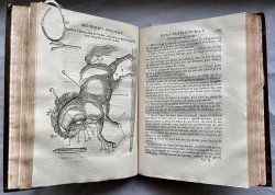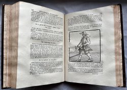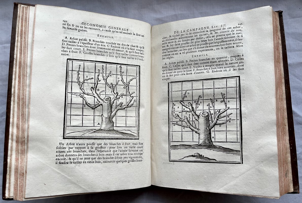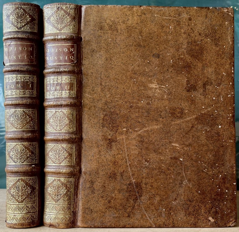 Second Edition, revised, corrected and enlarged by the Author. 2 Volumes, complete. 4to. (approx. 26 x 19cm) contemporary tan calf with raised bands, title labels and decorative gilt to spines. All edges speckled in scarlet. TEXT IN FRENCH. Both volumes with title pages in red and black with engraved printer's colophon. Volume I: 556pp. plus [11] Index, illustrated with 30 woodcuts in text and engraved vignette and initial to Dedication. Volume II: 602pp. plus [9] Index, illustrated with 63 woodcuts in text plus 14 plans of parterres. A clean set with no previous owners' markings or inscriptions. Very occasional light foxing. Endpapers slightly soiled and closed tear to rear pastedown of Volume II. Slight wear and loss to title labels. Boards slightly scuffed and with a few tiny flecks of white paint. Lower hinge of spine of Volume I just beginning to crack. Overall a VERY GOOD SET.