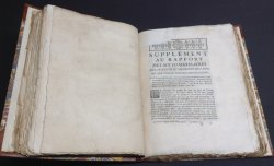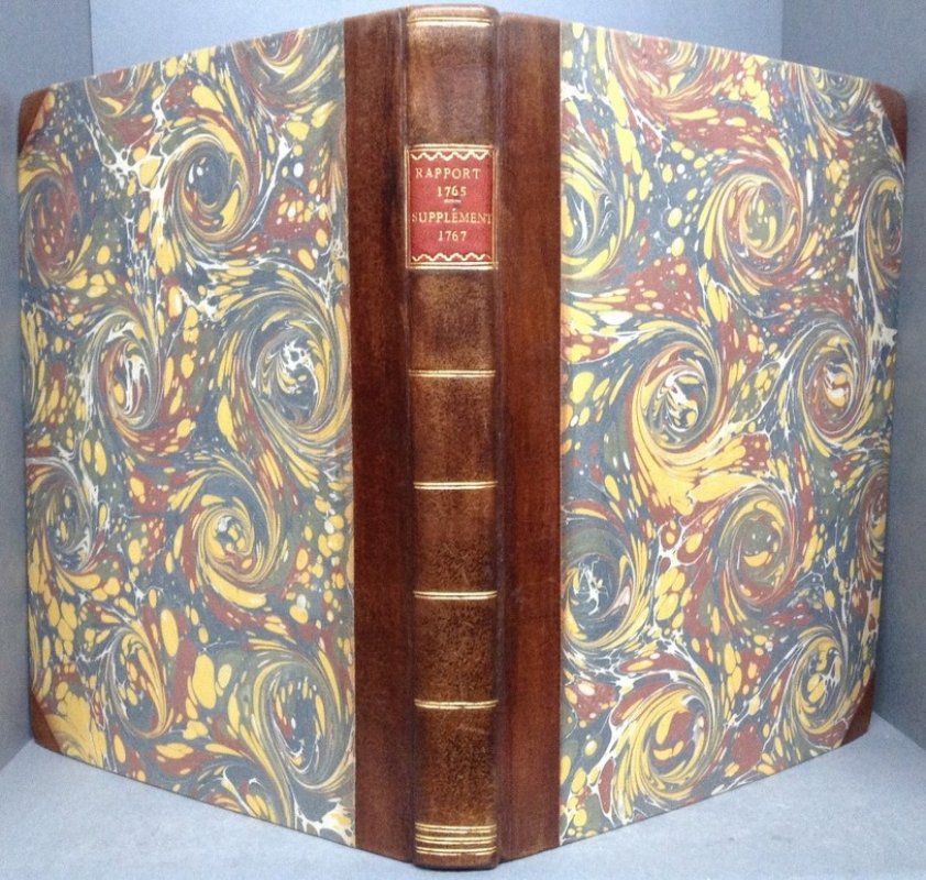 FIRST EDITIONS 4to. hardback in modern 18c. style half brown calf, red title label, gilt, and marbled boards. TEXT IN FRENCH. 125pp. and 164pp. Contemporary ink signature to early blank. Untrimmed edges a little dusty. First and last few pages of Supplement have been professionally repaired. Light occasional foxing to Supplement. A VERY GOOD COPY.