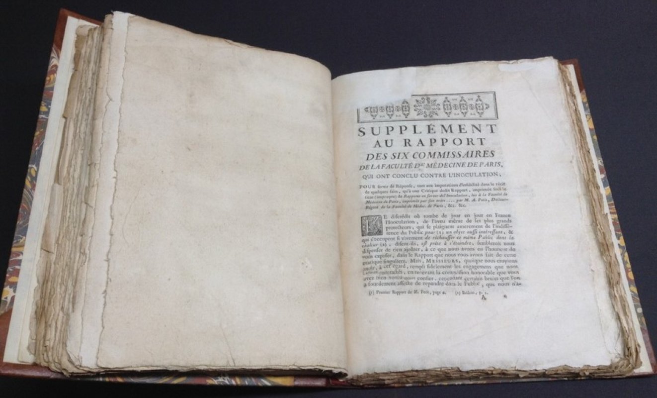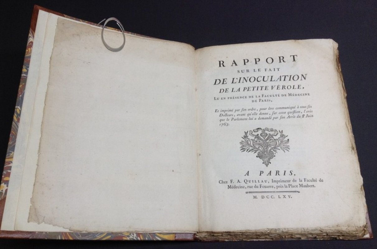 Rapport sur le fait de l'inoculation de la petite v Et imprime par son ordre, pour etre communique a tous ses Docteurs, avant qu'elle donne, sur cette question, l'avis que le Parlement lui a demande par son Arret du 8 Juin 1763.