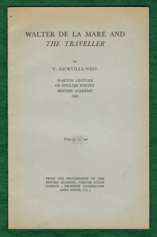 WALTER DE LA MARE AND 'THE TRAVELLER'. Warton Lecture on English Poetry British Academy 1953. From the Proceedings of The British Academy, Volume XXXIX.