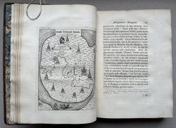 Second Edition 4to. (approx. 28 x 20.5cm) hardback in full calf, rebacked, with original contemporary boards. Black title label, decorative gilt to spine. Original marbled endpapers. Large paper edition. [xvi] 138pp. [iv]; [vi] 164pp. TEXT IN LATIN. Illustrated with 4 folding maps, 4 folding plates, 1 double-page plate, 7 single-page plates and 4 vignettes. LACKING PP. 77-80 in first section. Old ink inscription to top of title page. Old bookseller's pencil notes to early blank. Small faint ink stain to foredge, otherwise a clean, crisp copy. A few small scuffs and light edgewear to original boards. Overall a VERY GOOD COPY.