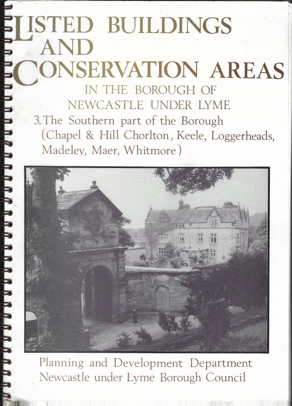 LISTED BUILDINGS AND CONSERVATION AREAS IN THE BOROUGH OF NEWCASTLE UNDER LYME. 3: The Southern part of the Borough (Chapel & Hill Chorlton, Keele, Loggerheads, Madeley, Maer, Whitmore).
