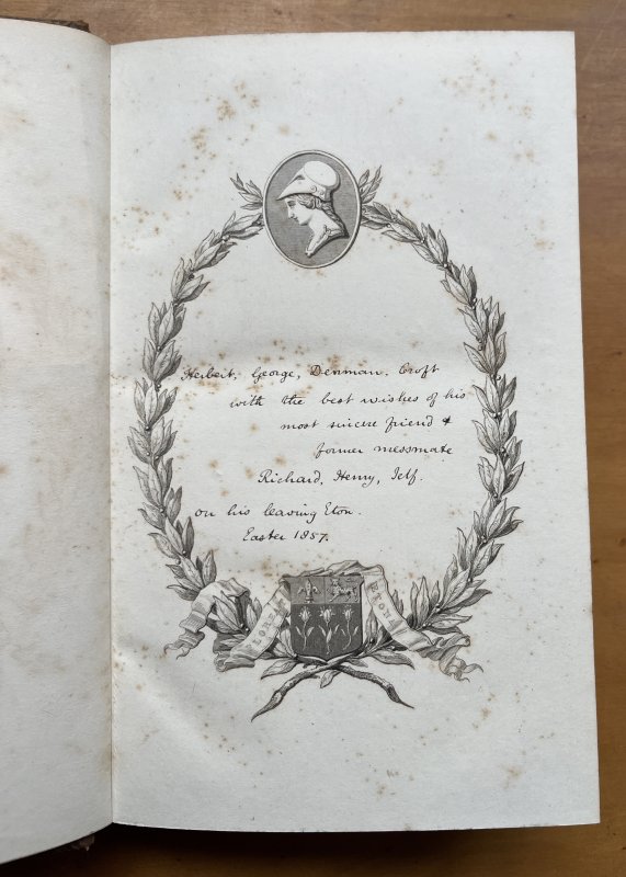 8vo., in full calf gilt, with raised bands and gilt decoration to spine, all edges marbled plus marbled endpapers; [vii] + 254pp. Neat ink gift inscription dated 1857 to early blank within an engraved device that includes the Eton College motto. Foxing to endpapers, to the first and last few pages, plus some occasionally throughout., a few small marks to boards, edges a little rubbed. VG overall.