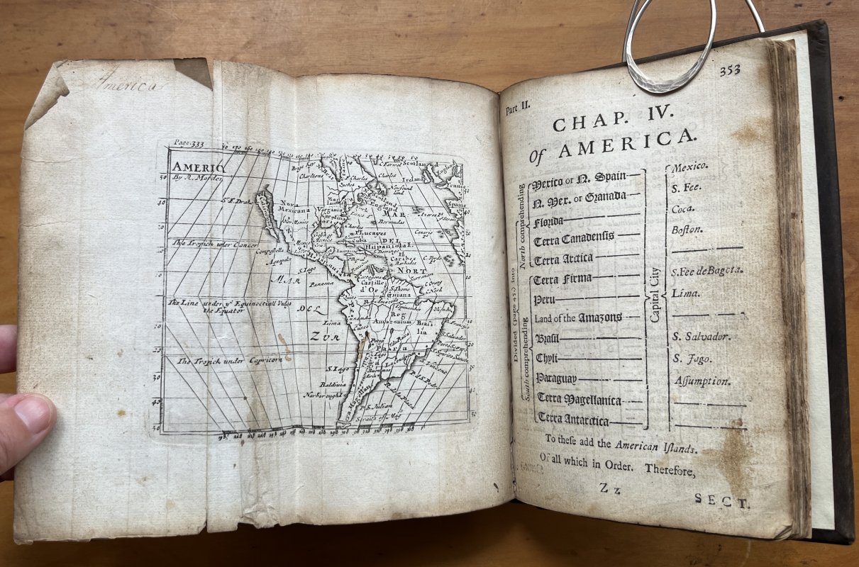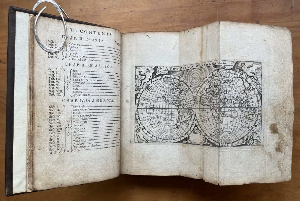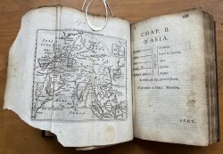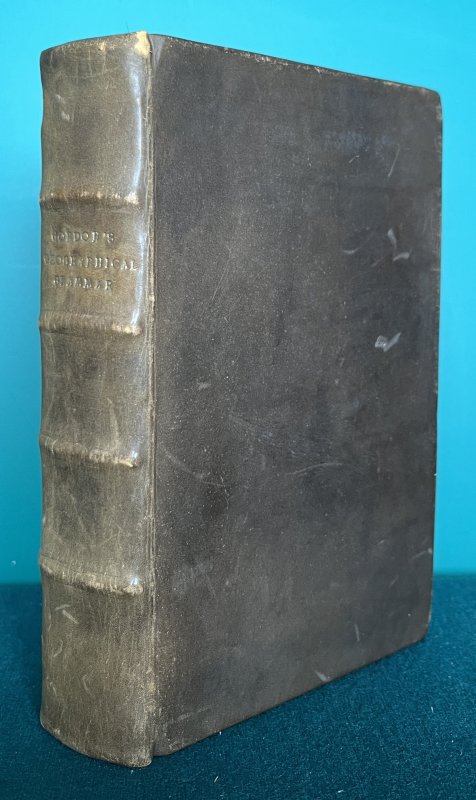 The Third Edition Corrected, and somewhat Enlarged. Small 8vo. (approx. 18 x 11.5cm) in later binding of full dark brown calf, raised bands and gitl titles to spine. New endpapers. [xxii], 428pp, plus [i]Advertisement to Bookbinder and [i] general Advertisements at end. All 16 Maps present (15 folding) with 3 repaired with linen or paper backings and some with minor creases or closed tears. Some loss to corners of Asia map (please see photos). Neat and elegant contemporary ink annotations in margins throughout. Modern bookplate to front pastedown. Lacking pages 224-230 and p.231 detached but present. Light rubbing to raised bands and corners of spine. Some foxing, staining, handling marks and old worming throughout but overall a Good, Sound Copy.
