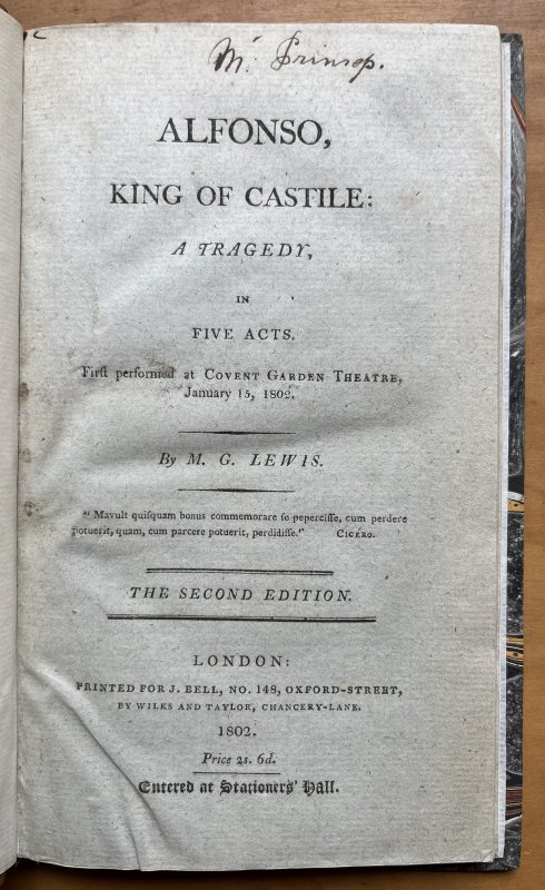 Second Edition 8vo. hardback rebound in 18th century style in quarter tan calf, raised bands, dark red title label, gilt, with marbled boards. New endpapers. xvi, 122pp. With Dramatis Personae list. Small modern bookplate to front pastedown. Occasional light foxing. A VERY GOOD COPY.