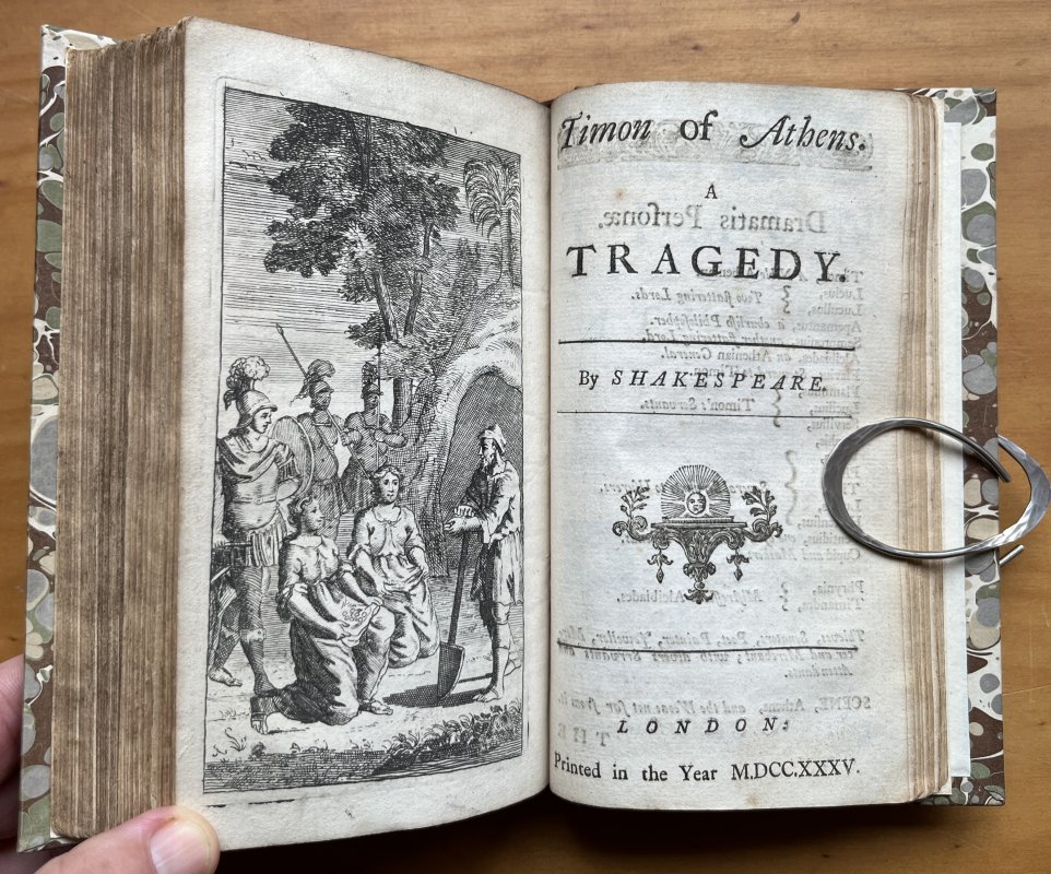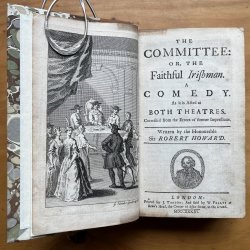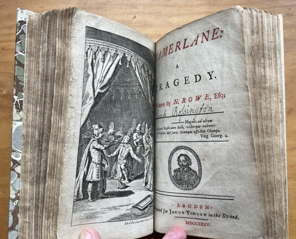 A collection of 9 Plays and 6 Essays bound in 2 Volumes. 12mo. (approx. 16.5 x 10cm) hardbacks bound in 18th century style quarter tan calf with raised bands, dark brown morocco title labels, gilt to spines and marbled boards. All except the Tragedy of Lady Jane Gray have titles pages and most of the plays have engraved frontispieces excepting Sir Courtly Nice, The Beaux Stratagem and The Drummer. Small modern bookplates to each front pastedown and elegantly hand-written list of contents to early blanks. Occasional light foxing. A VERY GOOD SET.