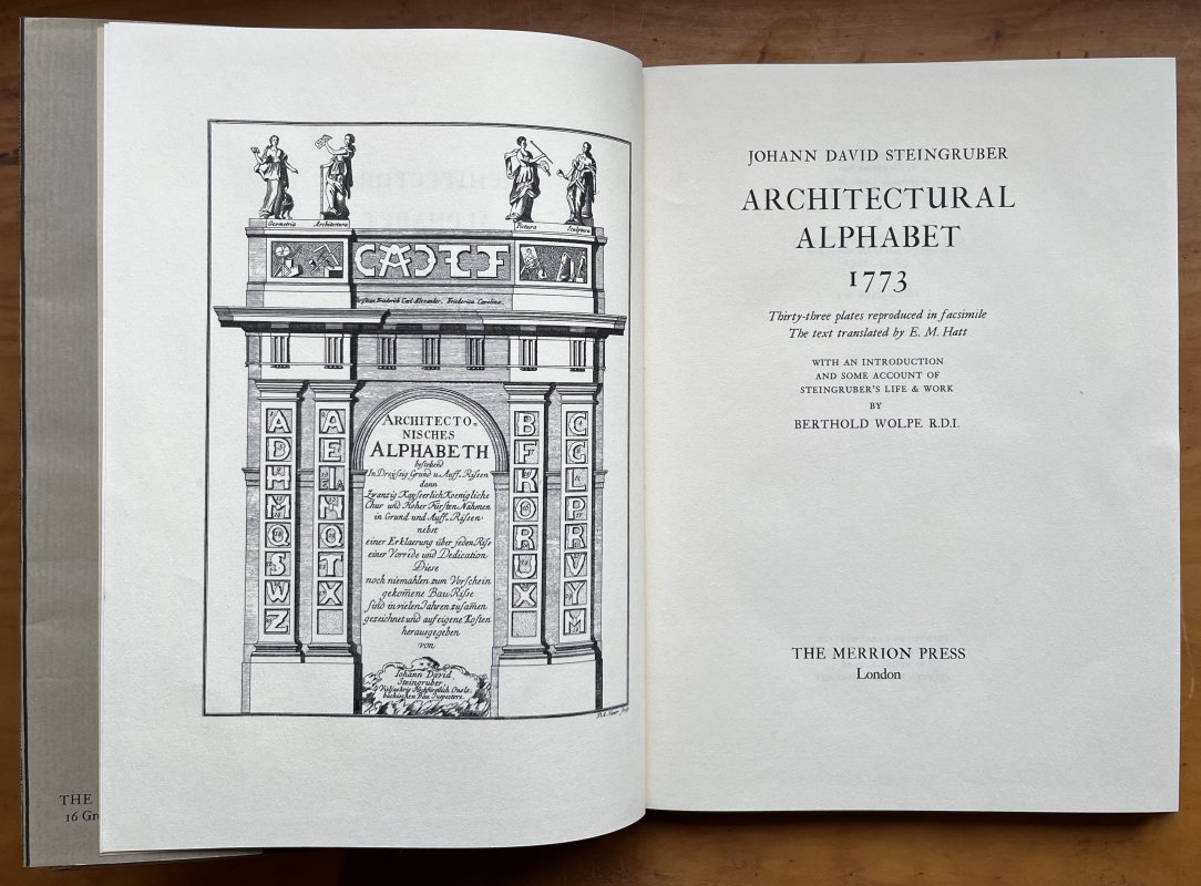ARCHITECTURAL ALPHABET 1773. Thirty-three Plates Reproduced in Facsimile With an Introduction and some Account of Steingruber's Life & Work by Berthold Wolpe