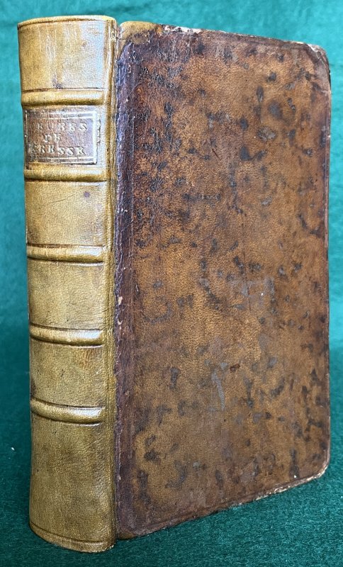 New Edition, revised, corrected and considerably enlarged. 2 Volumes bound as 1. 16mo. hardback in full tan calf, rebacked with original boards and title label. All edges red. Endpapers marbled. TEXT IN FRENCH. ii, 232pp., iii-x, [iv], 264pp. With both title pages and occasional decorative head and tail-pieces. Small modern bookplate to blank facing title page and small, old ink name to top of title page. Occasional pencil notes and marks in margins and to blanks. Corners a little bumped and rubbed, else a VERY GOOD COPY.