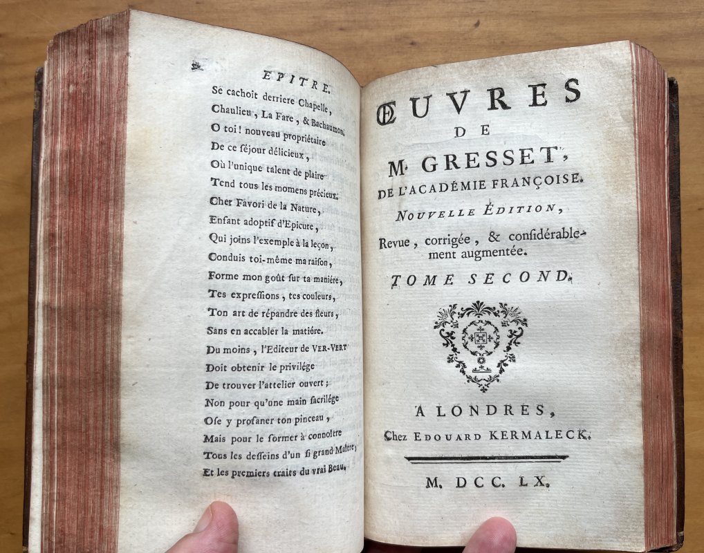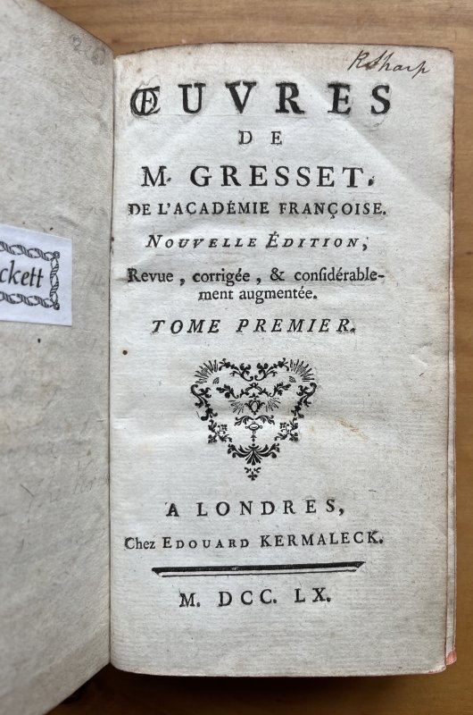 Ouvres de M. GRESSET de l'Academie Francoise (2 Volumes bound as 1)
