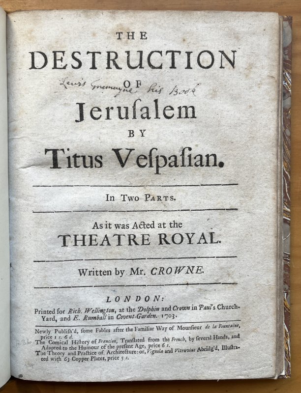 The Destruction of Jerusalem by Titus Vespasian. In Two Parts. As it was Acted at the Theatre Royal.