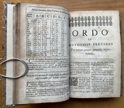 No Edition Stated. Small 8vo.hardback rebound in 18th century style quarter dark brown morocco with raised bands, title label, gilt, and marbled boards. New endpapers. TEXT IN LATIN. Pages unnumbered. Old ink inscription to early blank and red and gilt stamp to title page (please see photos). Small modern bookplate to front pastedown. Occasional light foxing and a few small ink spots. A VERY GOOD COPY.
