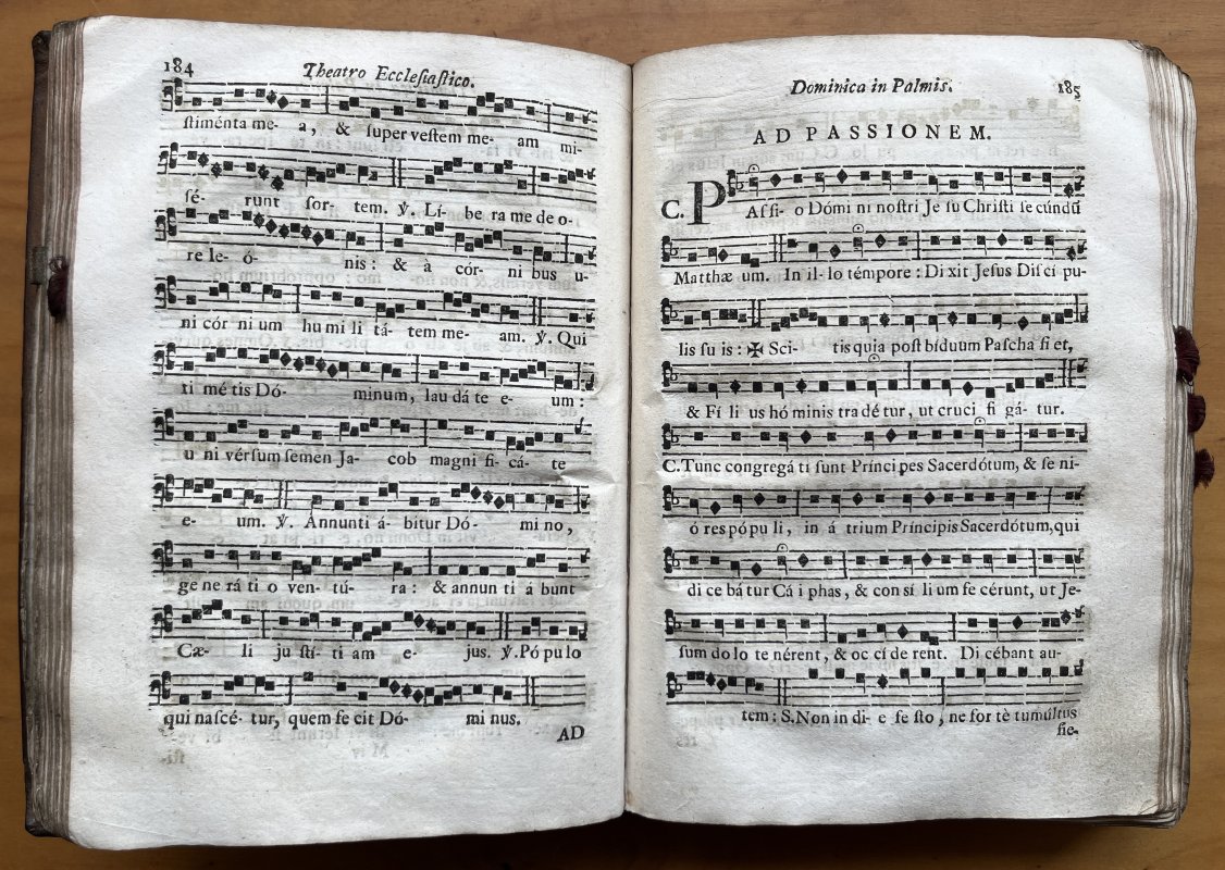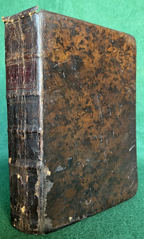 Sixth Impression. 8vo. hardback in contemporary dark mottled brown calf with raised bands, dark red title label, gilt to spine. TEXT IN PORTUGUESE. xii, 675pp. Text, [2]. With musial notations for Gregorian Chant throughout. Various pages have had small leather and ribbon tabs attached to the foredge (please see photo), presumably a long time ago. Old ink inscriptions to Dedication and rear pastedown with ink stain obliterating some of inscription and lightly affecting title page (please see photos). Small modern bookplate to front pastedown. Lacking free endpapers. Large closed tear and creasing to last leaf. Top layer of mottled calf and rubbed away in patches, particularly to the apine which also has some wear and slight loss to top and base. Gilt of title label rubbed. Overall a GOOD+ COPY.