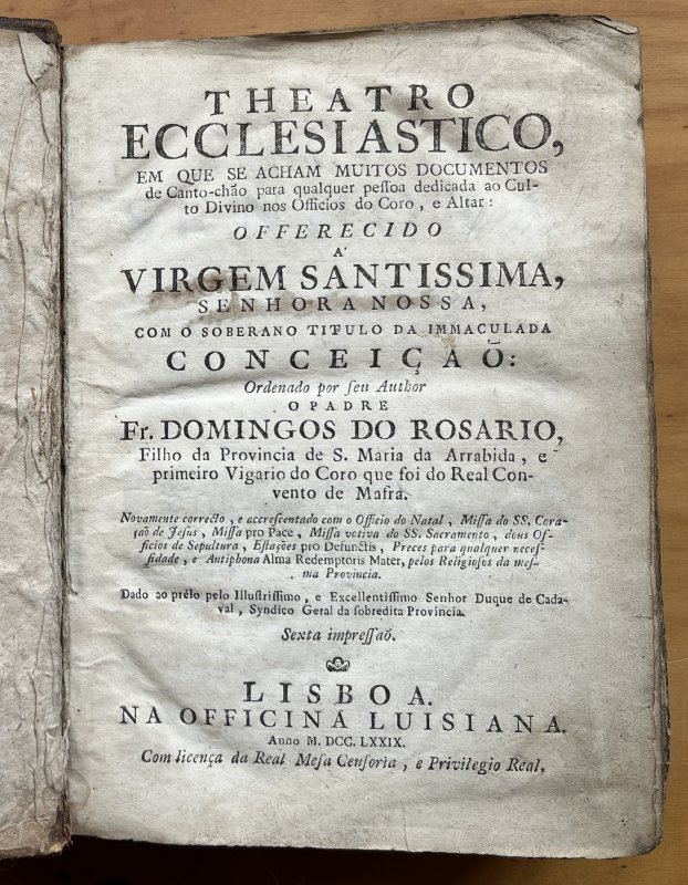Theatro Ecclesiastico, em que se acham Muitos Documentos de Canto - Chao para Qualquer Pessoa Dedicada ao Culto Divino nos Officios do Coro, e Altar. Rosario, Domingos do