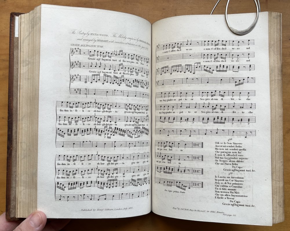 FIRST EDITION 2 Volumes. 8vo. hardbacks, rebacked with quarter tan calf spines, raised bands, dark red title labels, gilt, with original brown morocco boards with gilt borders. All edges marbled. Volume I: xxiii, 354pp. with engraved portrait frontispiece and one double-spread of musical notation. Volume II: 404pp. Old engraved armorial bookplates and small modern bookplates to front pastedpowns. A few pencil notes to blanks. A VERY GOOD SET.