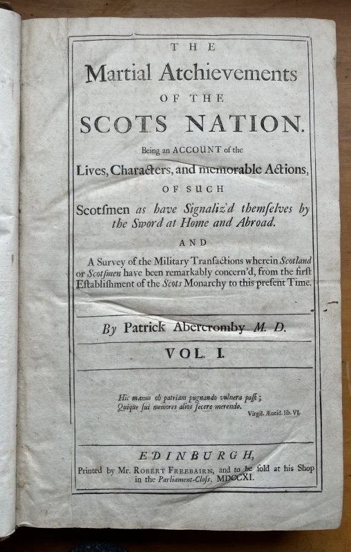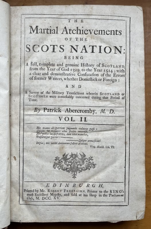 THE MARTIAL ATCHIEVEMENTS OF THE SCOTS NATION (2 Volumes, Complete) Volume I: Being an Account of the Lives, Characters, and memorable Actions of such Scotsmen as have Signaliz'd themselves by the Sword at Home and Abroad. And a Survey of the Military Tansactions wherein Scotland or Scotsmen have been remarkably concern'd