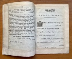 Second Edition (dedicated to His Royal Highness the Prince of Wales). Softback (approx. 25.5 x 19cm) of original pages, perfect bound with later blank pages at front and rear, and greige light card covers, only the front cover remaining and detached. 6 later blanks at front and rear. 17pp. plus half-title and blank at rear. Half-title, Title, Advertisement printed one side only, followed by Dedication and Text printed both sides. The original printed pages have been skilfully let into a larger border so that both printed sides may be seen but given greater margins for handling. Please see photos. Decorative engraved vignettes to half-title, title, first and last pages of text. Barcode sticker to first of modern blanks along with pencil name and numbers. Pencil notes to early blank. Slight browning to some page edges where they have been attached to borders, else clean and bright internally. Font cover detached with wear and small areas of loss to top edge. Rear cover missing. Internally a VERY GOOD COPY, externally poor.