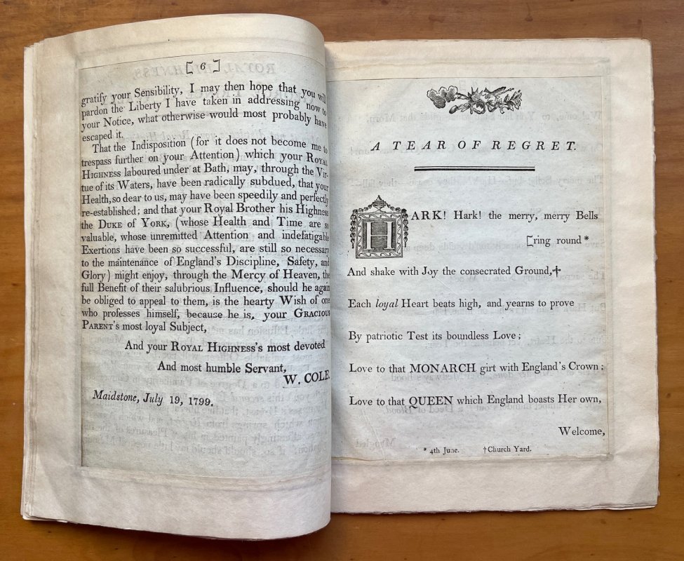 A TEAR OF REGRET TO THE MEMORY OF LIEUTENANT COLONEL SHADWELL, of the Twenty-Fifth Regiment of Light Dragoons, Shot through the Heart by a Deserter, at Wrotham, on Saturday the First Day of June, 1799. Half-Title: A TEAR OF REGRET ON THE DEATH....