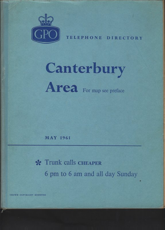 GPO TELEPHONE DIRECTORY. CANTERBURY AREA. MAY 1961.