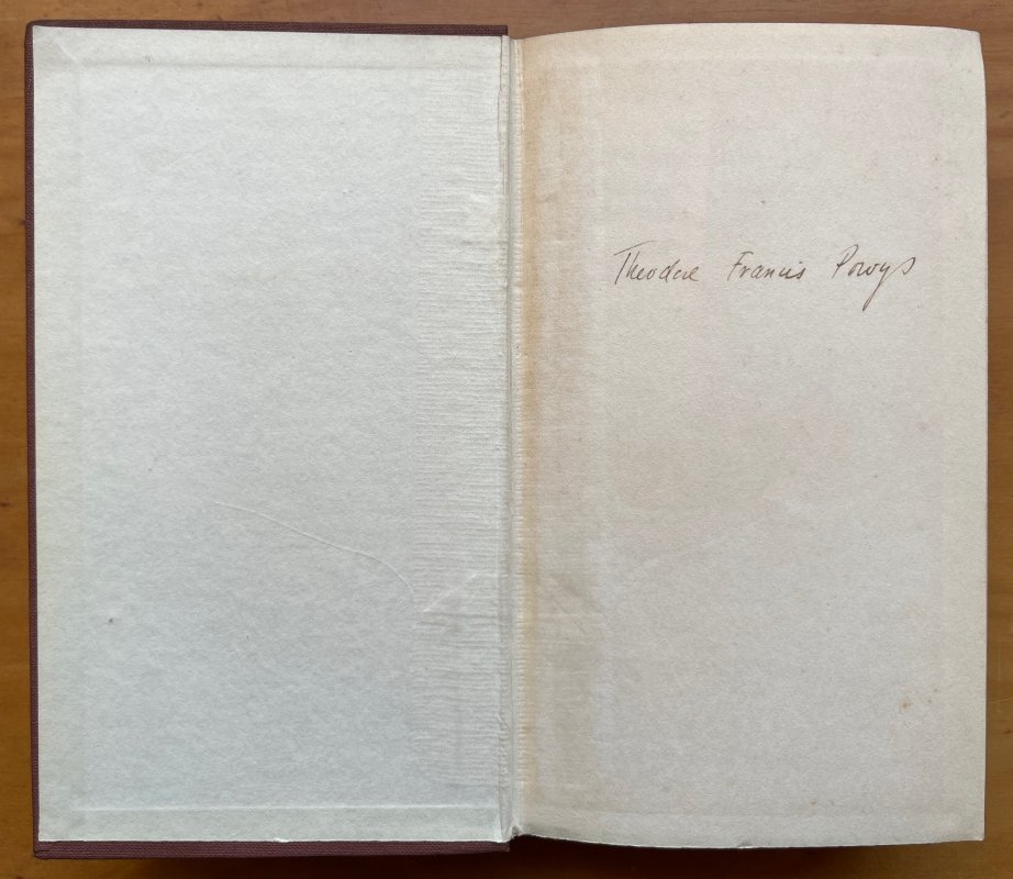 SIGNED, FIRST EDITION. Small 8vo., brown clothbound hardback gilt; [v] + 235pp. Author's ink signature 'Theodore Francis Powys' to ffep. Light foxing to edges and endpapers, light wear and a few marks to boards, front top outer corner slightly bumped. A Good+ copy overall.