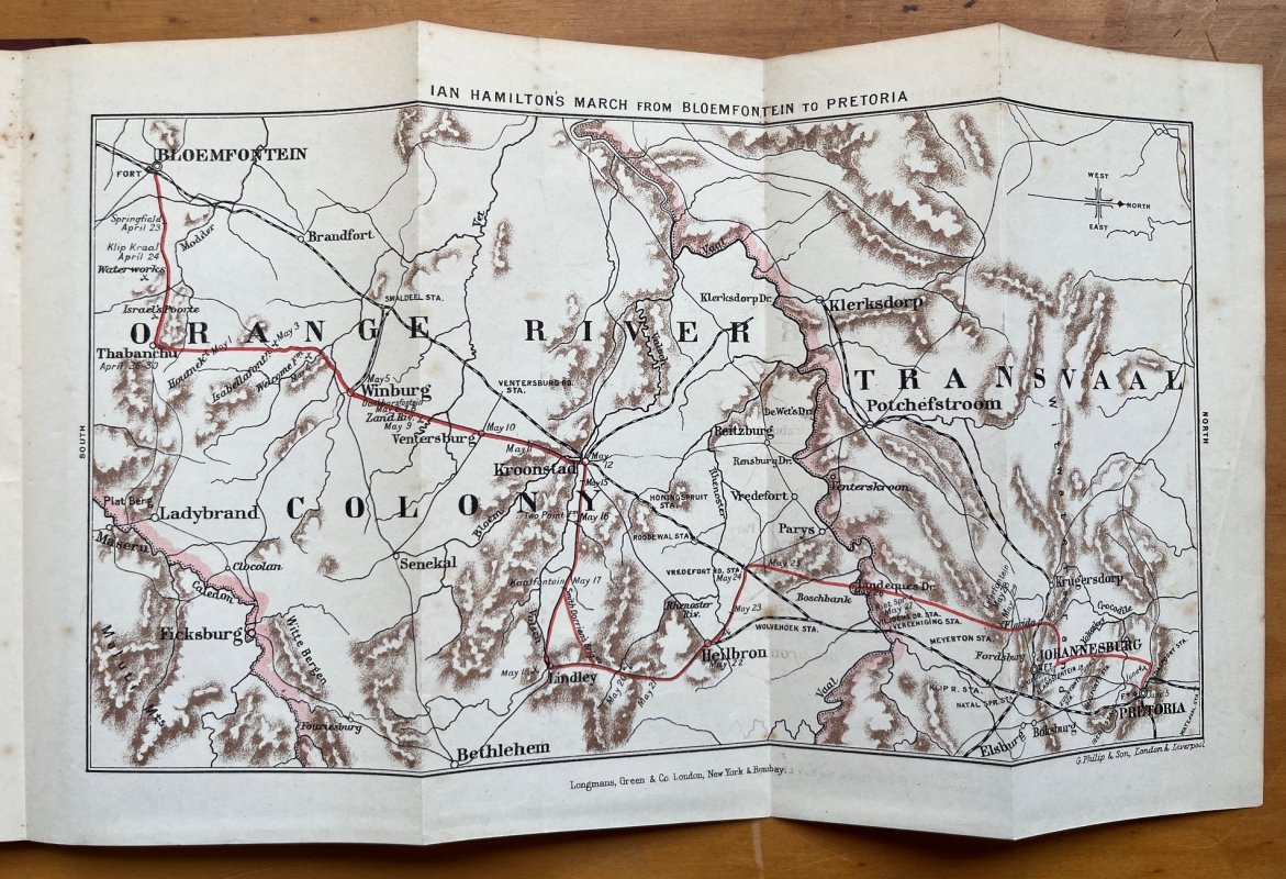 FIRST EDITION, FIRST IMPRESSION 8vo. dark red cloth hardback, gilt titles to spine and upper board. xii, [2], 409pp. + 32pp. Publisher's Catalogue at end. Illustrated with a b/w portrait frontispiece, tissue-guarded, 9 b/w maps and plans within the Text, and a large colour folding Map at end. Elegantly handwritten gift inscription on card (dated Xmas 1900) pasted to ffep along with handwritten date (same) to ffep itself. Occasional light foxing, heavier to prelims. All spine edges rather rubbed and worn with slight fraying and spine somewhat darkened (please see photos). Overall a GOOD+ COPY.