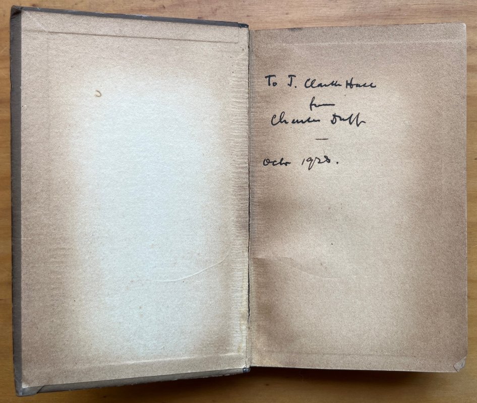 SIGNED, PRESENTATION COPY. Reprint (same month as First Edition) Small 8vo. hardback with black cloth spine, paper title label, and decorative patterned boards. 128pp. Author's ink inscription to ffep reads 'To. J. Clarke Hall from Charles Duff - Oct. 1928'. Some pencil underlining in text. Fairly heavy foxing throughout. Edges of cloth spine beginning to split and fray, title label rather sunned but still legible, lower board lightly soiled (please see photos). Overall a Good Copy.