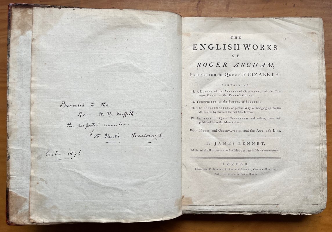 The English Works of Roger Ascham, Preceptor to Queen Elizabeth. Containing, I. A Report of the Affairs of Germany, and the Emperor Charles the Fifth's Court. II. Toxophilus, or the School of Shooting. III. The Schoolmaster, or perfect Way of bringing up Youth, illustrated by the late learned Mr. Upton. IV. Letters to