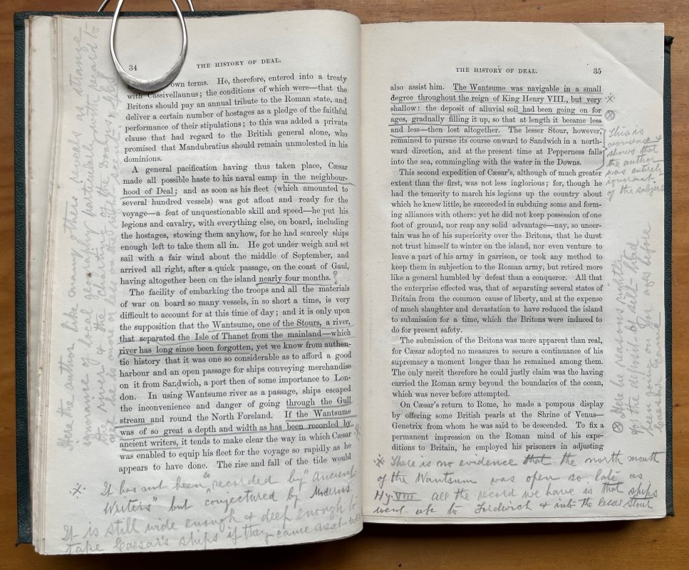 FIRST EDITION 8vo. hardback in original dark green blind-stamped cloth,gilt. 360pp. plus 5pp. Index, 2pp. List of Subscribers and Errata at end. With folding frontispiece engraving of the landing of Julius Caesar and one engraved plate of the pier. Pencil signature to ffep pus occasional pencil underlining and a couple of spreads with copious pencil notations in margins (please see photos). Slight foxing to foredge and ageing to endpapers. Lower outer corners of boards lightly damp-stained. Slight wear to top and base of spine. A VERY GOOD COPY.