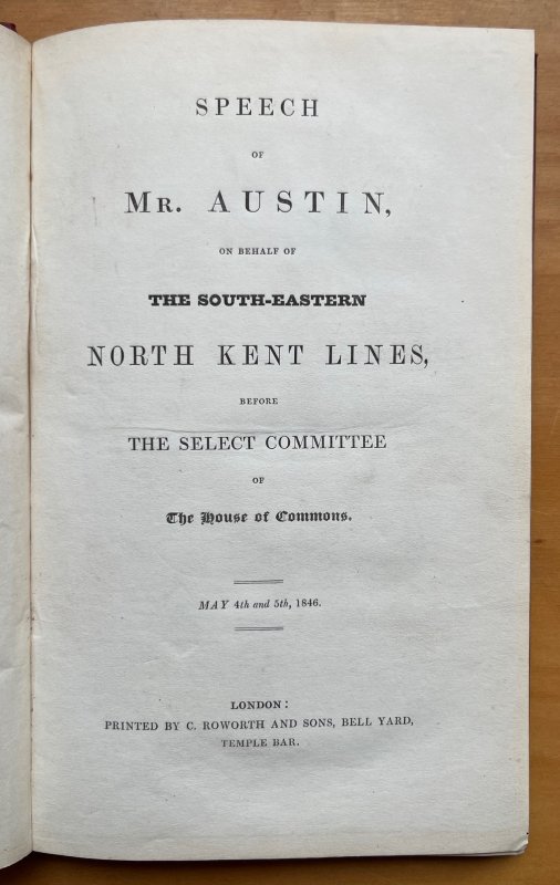 Speech of Mr. Austin, on Behalf of the South-Eastern North Kent Lines, before the Select Committee of the House of Commons. May 4th and 5th, 1846