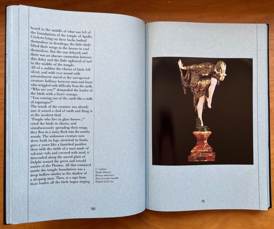 LIMITED EDITION, Signed by the Publisher, Number 1401 of 3000 copies. 4to. black silk hardback with decorative gilt titles to spine and upper board and colour plate to upper board, in black cloth clamshell case with paper title label to spine and decorative printed pattern to sides. Printed on blue handmade paper from the Pietro Miliani Mills at Fabriano. TEXT IN ENGLISH. 183pp. with many colour plates of Art Deco sculptures of dancers tipped-in throughout. Signed by the Publisher to the Limitations page. No other markings or inscriptions. A VERY GOOD COPY in VERY GOOD CLAMSHELL CASE.