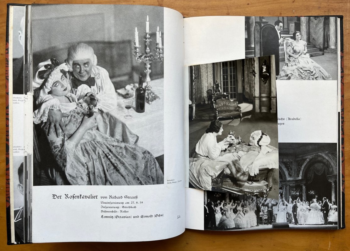 FIRST EDITION Small 4to. (approx. 24.5 x 18cm) softback, bound as a hardback in half black buckram, gilt, over patterned paper-covered boards, original covers bound-in. New endpapers. TEXT IN GERMAN BLACK LETTER. 132pp., profusely illustrated in b/w with one actual b/w photograph of Der Rosenkavalier bound-in at p.54. A clean copy with no previous owners' markings or inscriptions. Light foxing to original card covers. Slight rubbing to patterned paper of lower board, else a VERY GOOD COPY.
