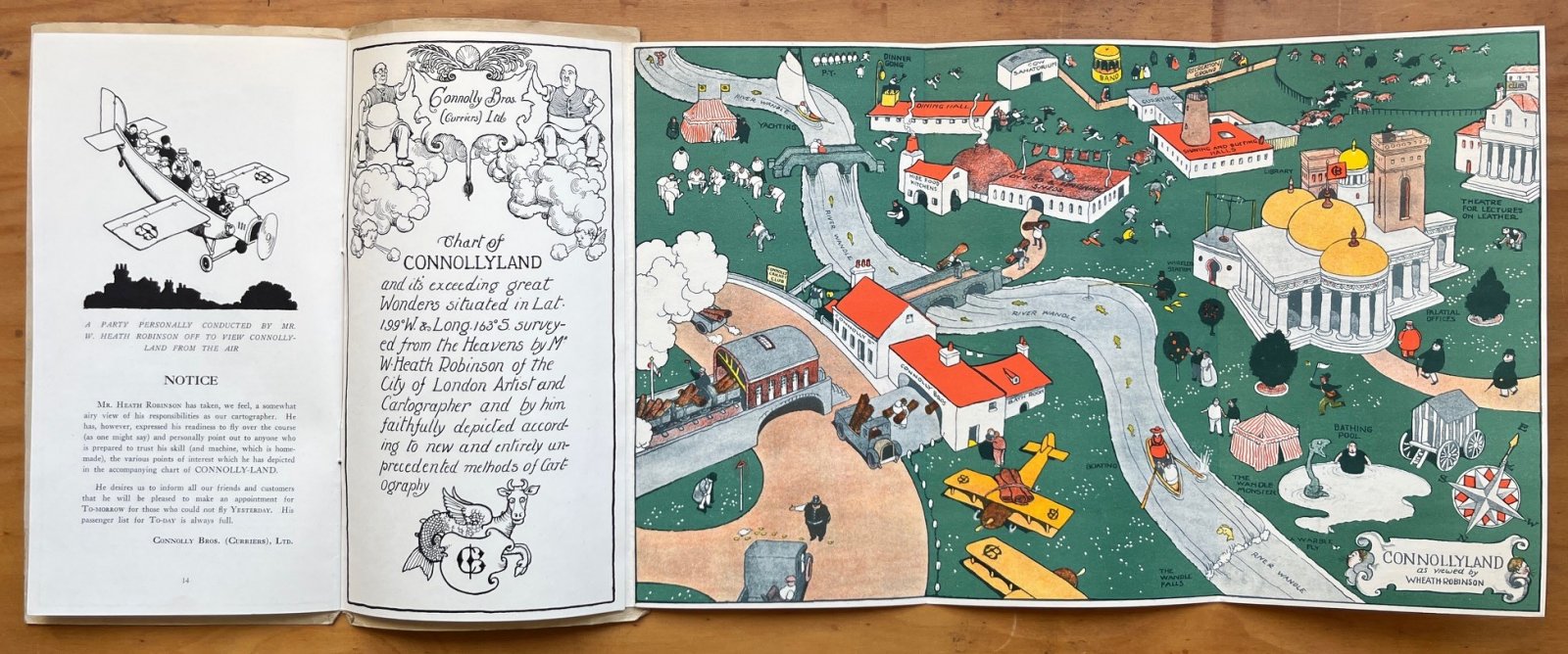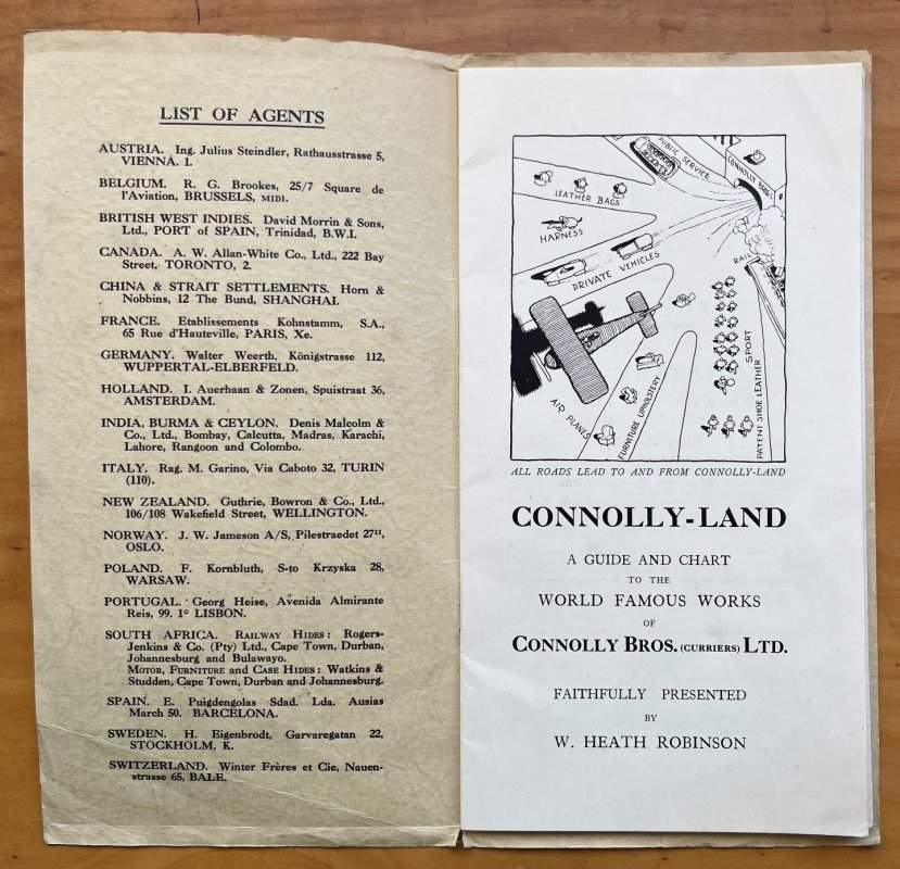 FIRST EDITION Tall stapled softback (approx. 26 x 13.5cm) in illustrated card wraps. 16pp., profusely and wittily illustrated in b/w by W. Heath Robinson, plus a 3-fold colour illustration of Connolly Land at end. A clean copy with no previous owners' markings or inscriptions. Small chip to base of spine, else a VERY GOOD COPY of a VERY SCARCE TITLE.