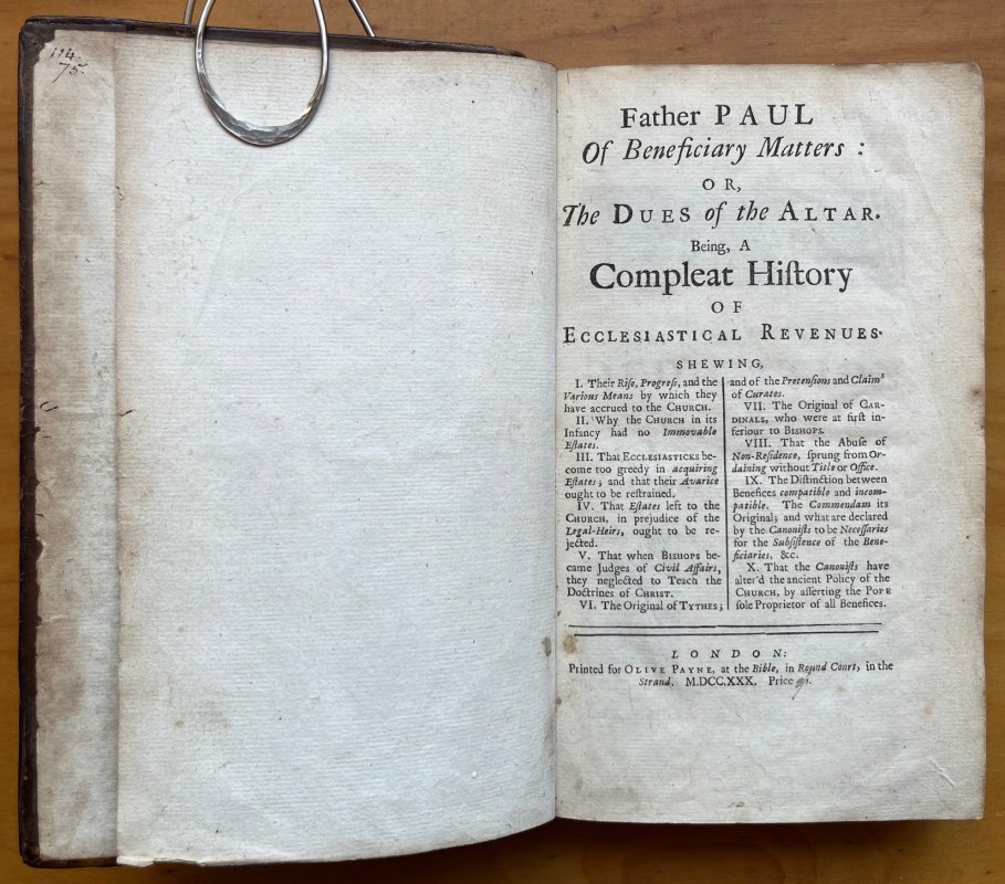 FATHER PAUL OF BENEFICIARY MATTERS or THE DUES OF THE ALTAR. Being a Compleat History of Ecclesiastical Revenues.