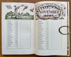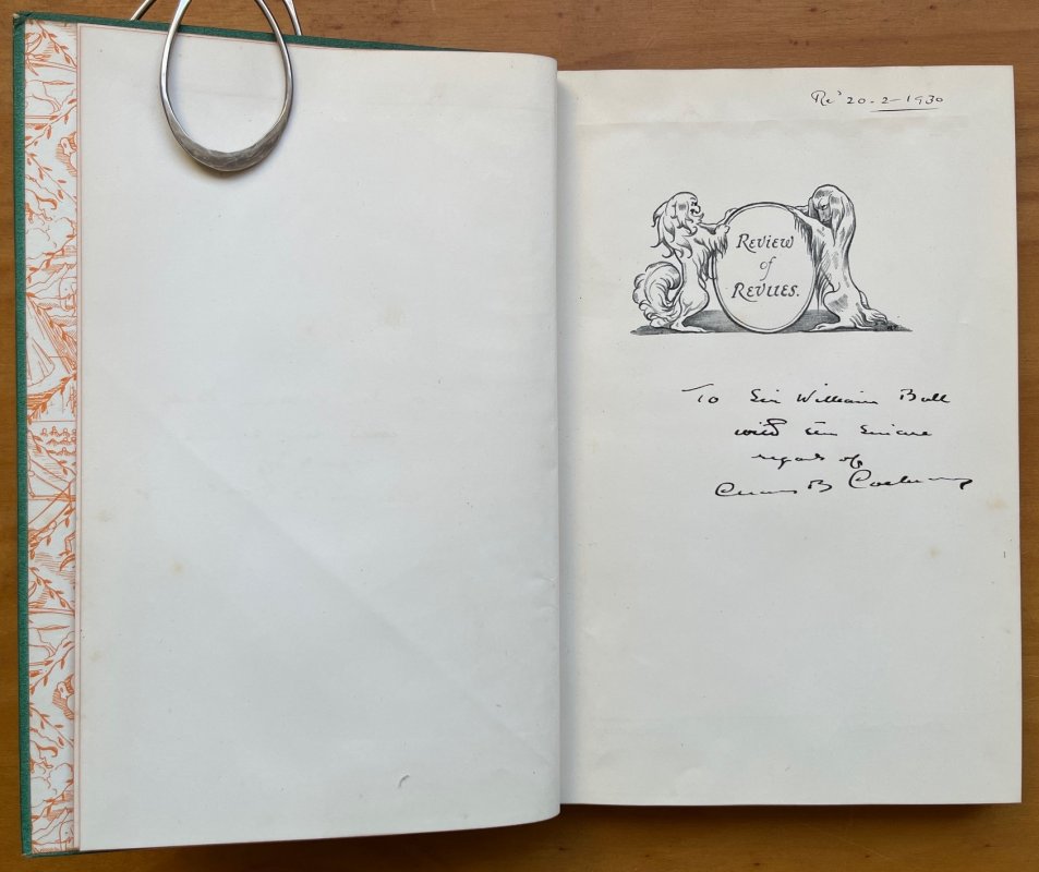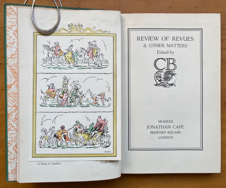 FIRST EDITION 8vo. hardback in quarter orange cloth, gilt, with green paper-covered boards and orange and cream paper title label to upper board. Decorated endpapers. 94pp., profusely illustrated in b/w and with tipped-in colour frontispiece, plus 24pp. Calendar, printed in three colours and illustrated by Edward Bawden at end. Front cover and spine of original dust jacket pasted to rear pastedown. Charles B Cochran's inscription to half-title reads 'To Sir William Bull with the sincere regards of Charles B. Cochran'. Another small ink inscription (presumably from the recipient) at top of page reads 'Re' 20.2.1930'. No other markings or inscriptions. Light foxing to prelims. Slight rubbing to board edges and corners, else a VERY GOOD, BRIGHT COPY.