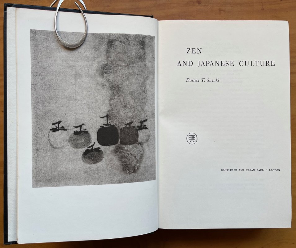 FIRST THUS (Revised and enlarged second edition of Zen Buddhism and Its Influence on Japanese Culture, Kyoto, Eastern Buddhist Society, 1938) 8vo. black cloth hardback, gilt, no dust jacket. Top edge red. 478pp., Indexed, illustrated with b/w plates, some folding. A clean copy with no markings or inscriptions. Light foxing to endpapers and foredge. Light wear to top and base of spine and a couple of faint spots of soiling to boards. A VERY GOOD COPY.
