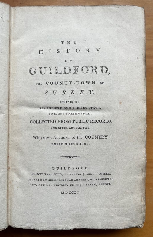 Published by J and S Russell in Guildford 1801